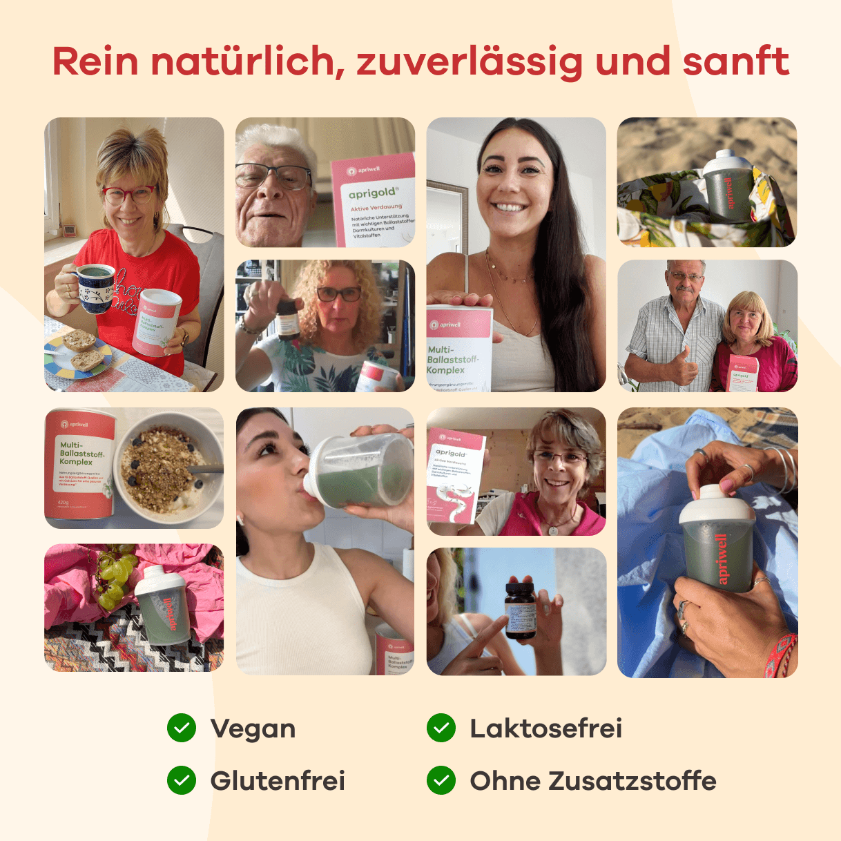 Die meisten Kunden schätzen die mit Aprigold wiedergewonnene Lebensqualität so sehr, dass sie die Präparate dauerhaft einnehmen und damit ihre Darmflora, Verdauung und Gesundheit pflegen.