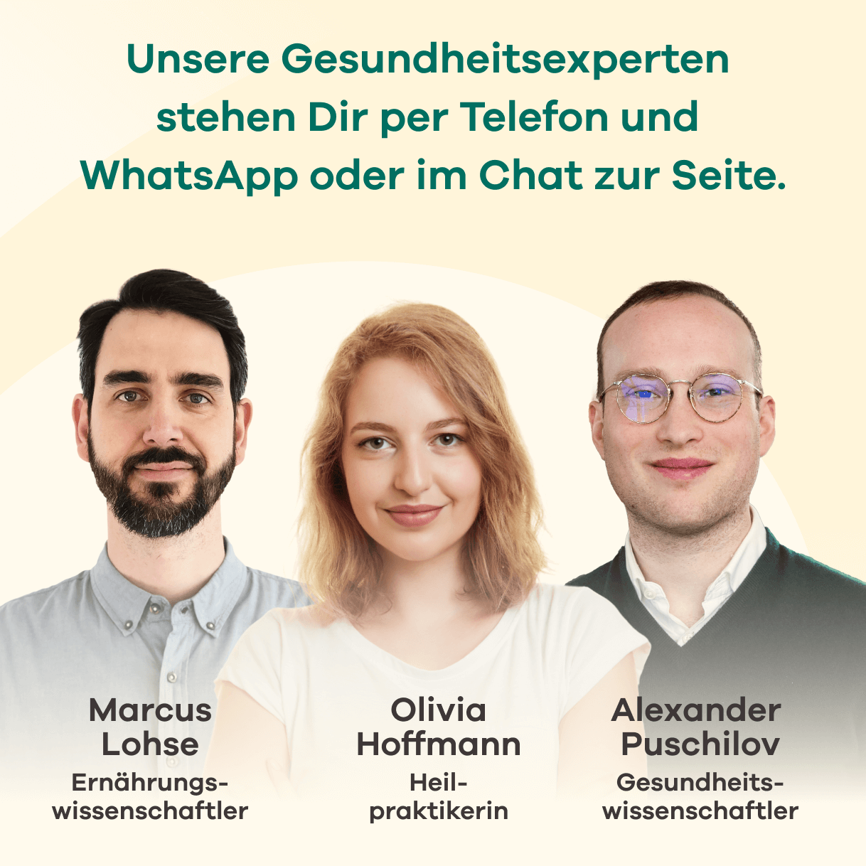Wir lassen Dich mit Deinen Verdauungsproblemen nicht alleine. Falls Du Fragen hast oder Dir eine persönliche Beratung wünschst, rufe uns einfach an.