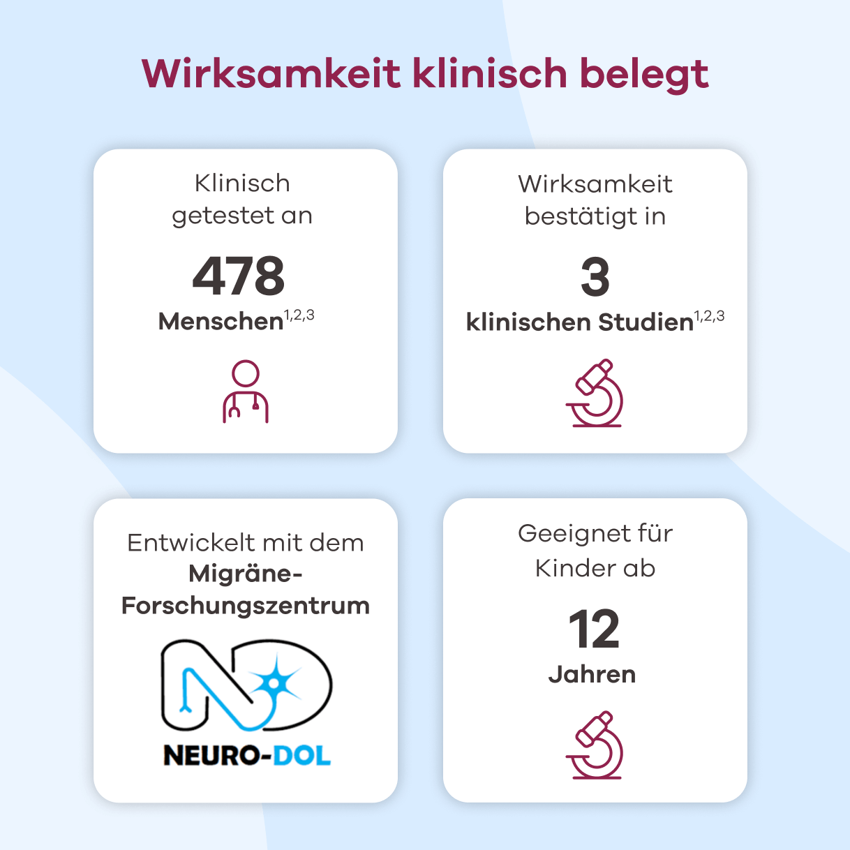 Die Studien wurden vor der Durchführung angezeigt und zusammen mit dem renommierten Migräne-Zentrum Neuro-Dol geplant. Die Veröffentlichung der Studien im Journal "Clinical Investigation" erfolgte nach Abschluss des Peer Review Verfahrens.